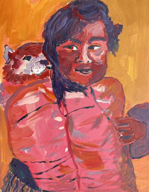 Inuit girl carrying a...